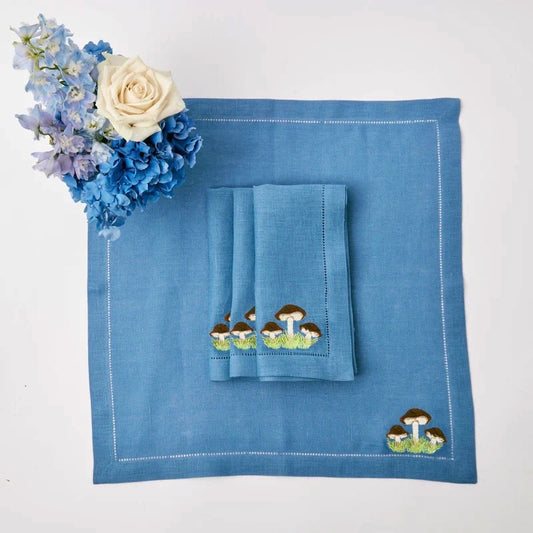 Mushroom Blue Linen Napkins, Set of 4